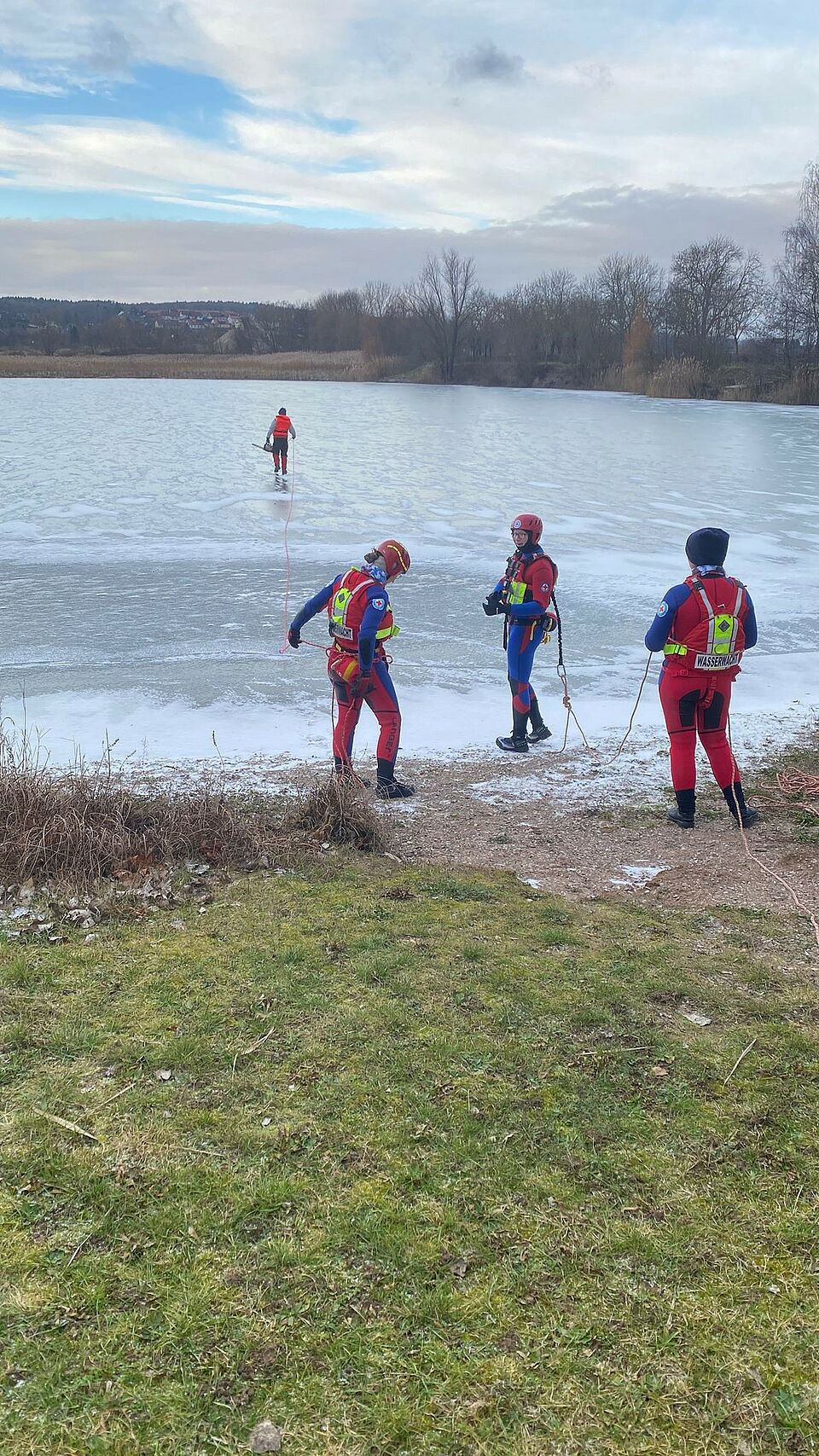 Der Dauerfrost der vergangenen Tage bot den Kameraden der DRK Wasserwacht Bad Salzungen die Möglichkeit, am Kiessee kurzfristig eine Eisrettungsübung durchzuführen.