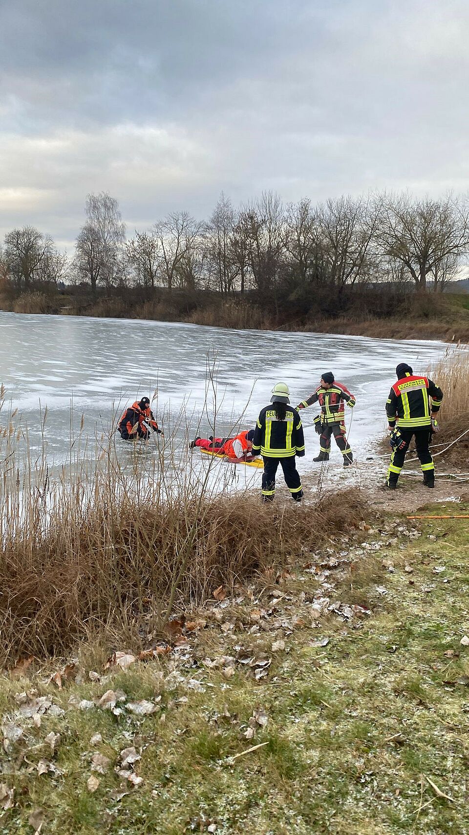 Bricht ein Mensch auf einem gefrorenen See ein, ist es entscheidend, dass die Retter genau wissen, wie sie vorgehen müssen. Die letzte Übung dieser Art hatte witterungsbedingt im Jahr 2017 stattgefunden, weshalb das Thema für viele Mitglieder der
